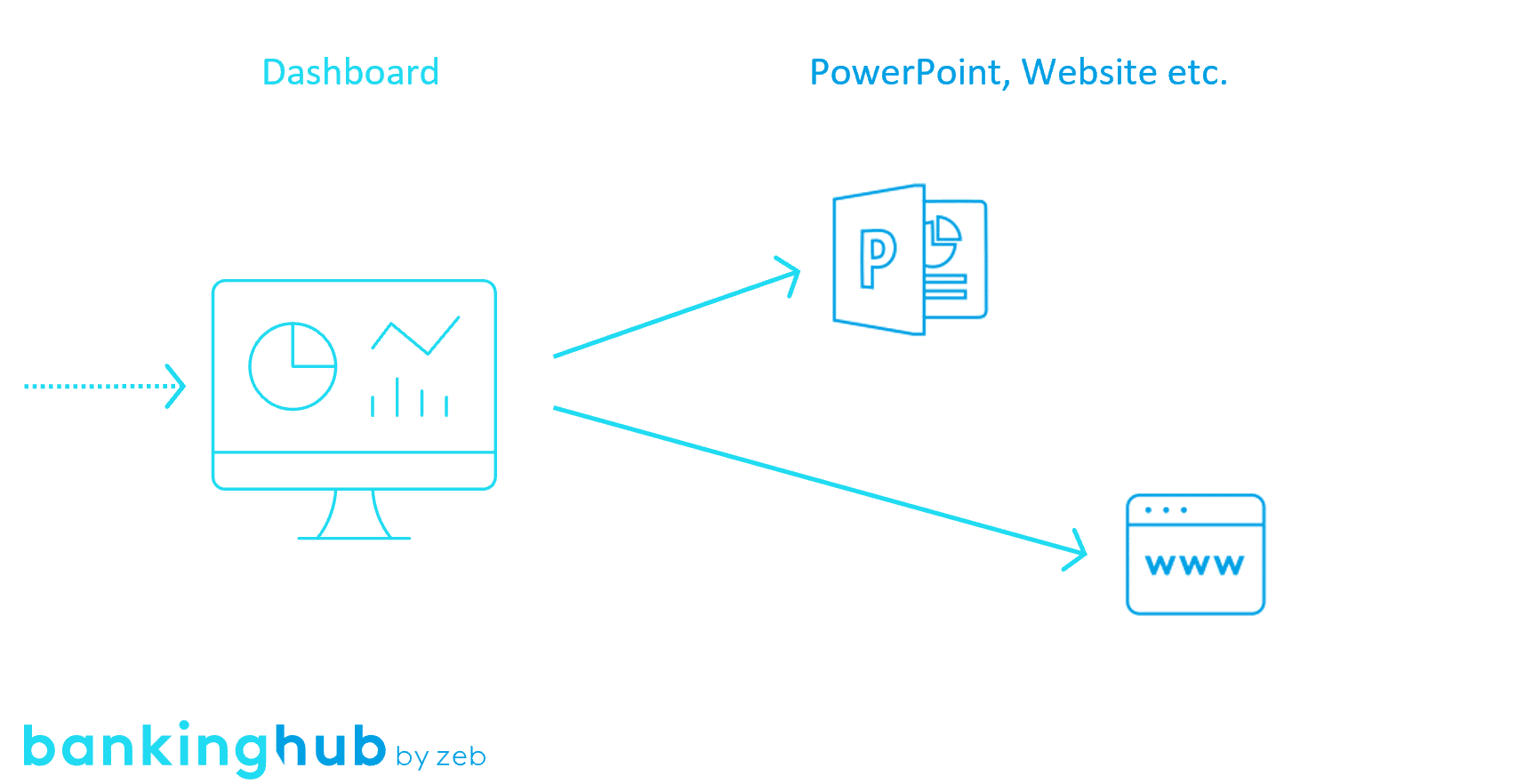 Die Dashboards werden innerhalb der Reportingarchitektur von klar definierten Entwicklerrollen verantwortet, die gezielt auf die Entwicklung und Pflege dieser Komponenten ausgerichtet sind. Sie sind ausschließlich mit den vorgesehenen Tools abbildbar und stellen zunächst Reportingartefakte dar, die für einen bestimmten Zweck entwickelt werden. Zudem kann einfach auf die Dashboards zugegriffen werden, und sie können mit neuen Daten aktualisiert werden. Eine flexible Weiterverwendung der Dashboards in anderen Anwendungen oder die spontane Anpassung der exportierten Visuals ist jedoch nicht möglich.